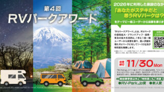 Uncategorized第4回RVパークアワード投票サイト 今年も一般投票の受付中です あなたが1番素敵だと思ったRVパークはどこですか? というタイトルで全国600施設の中から 初代3位 第2回 5位 第3回 5位 をいただきました☺️...2026.04.24Uncategorized