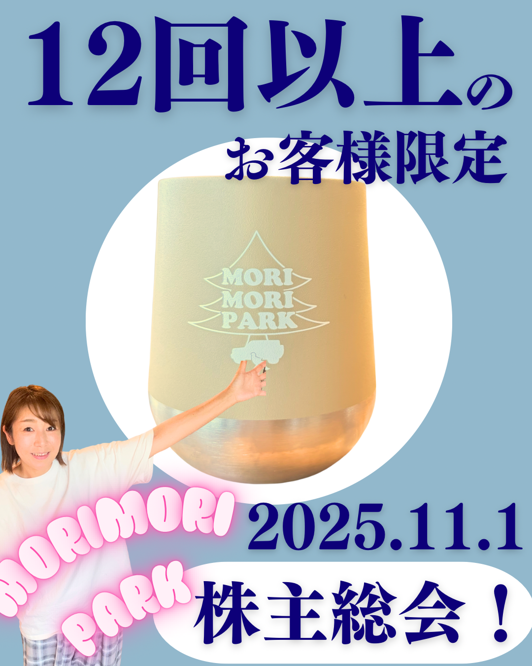 Uncategorized2025.11.1(土)株主総会! 2025年11月1日 MORIMORI PARKは 皆様のおかげで3周年を迎えます! 当初は半年持たずして潰れてしまうのでは・・😱と 思っていたのですが、まだなんとか運営できているのは 当たり前ですが支え...2025.09.27Uncategorized